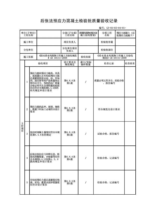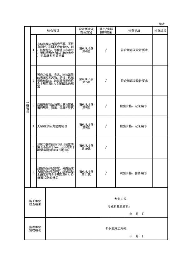 表格名称:后张法预应力混凝土检验批质量验收记录