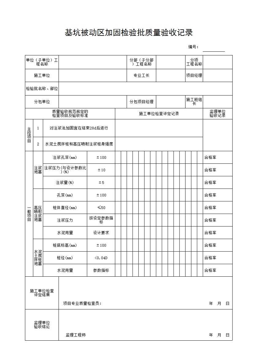 表格名称:基坑被动区加固检验批质量验收记录