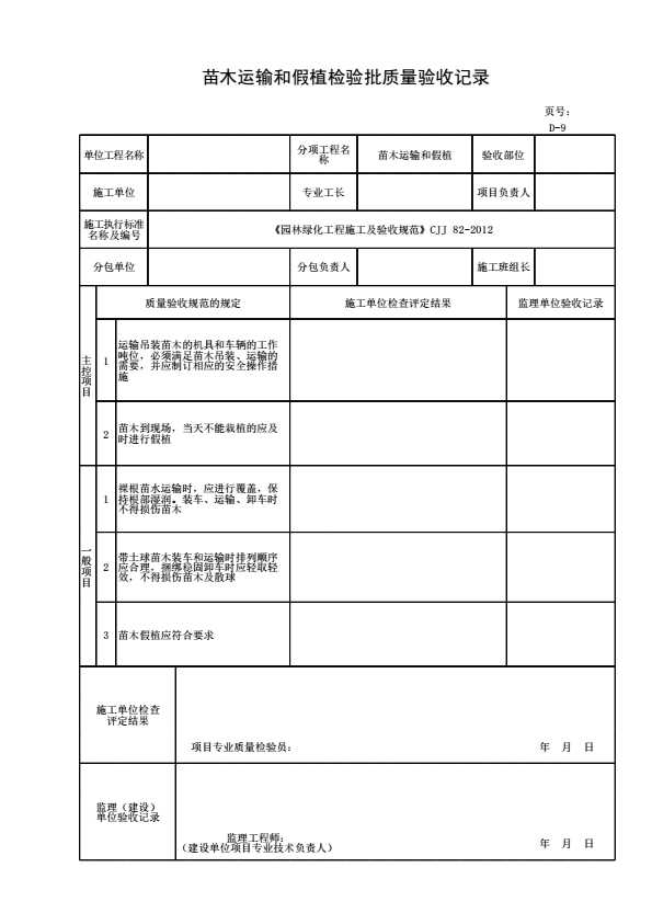 表格名称:02010301 苗木运输和假植检验批质量验收记录