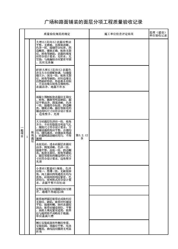 表格名称:02010301 广场和路面铺装的面层分项工程质量验收记录