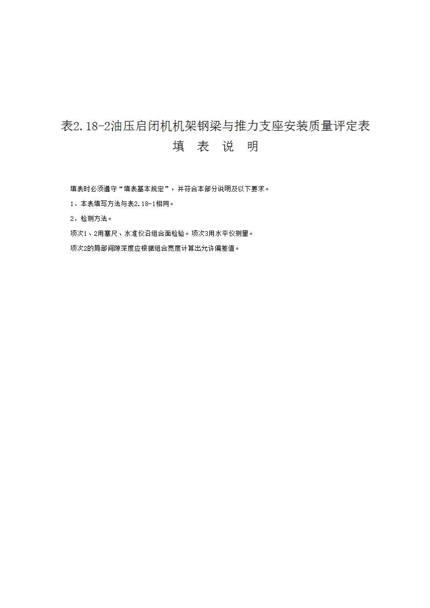 表2.18-2 油压启闭机机架钢梁与推力支座安装质量评定表