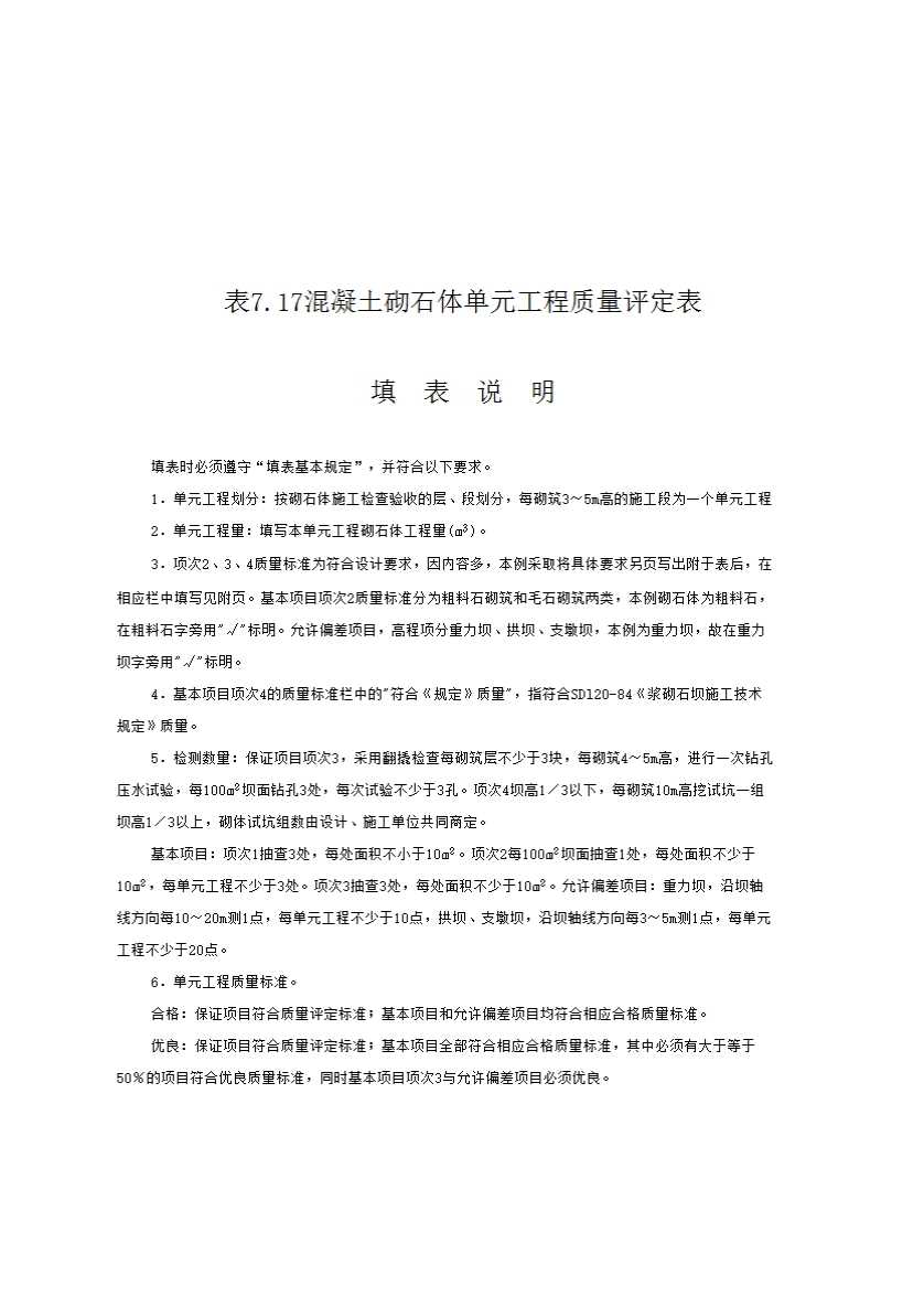 表格名称:表7.17 混凝土砌石体单元工程质量评定表