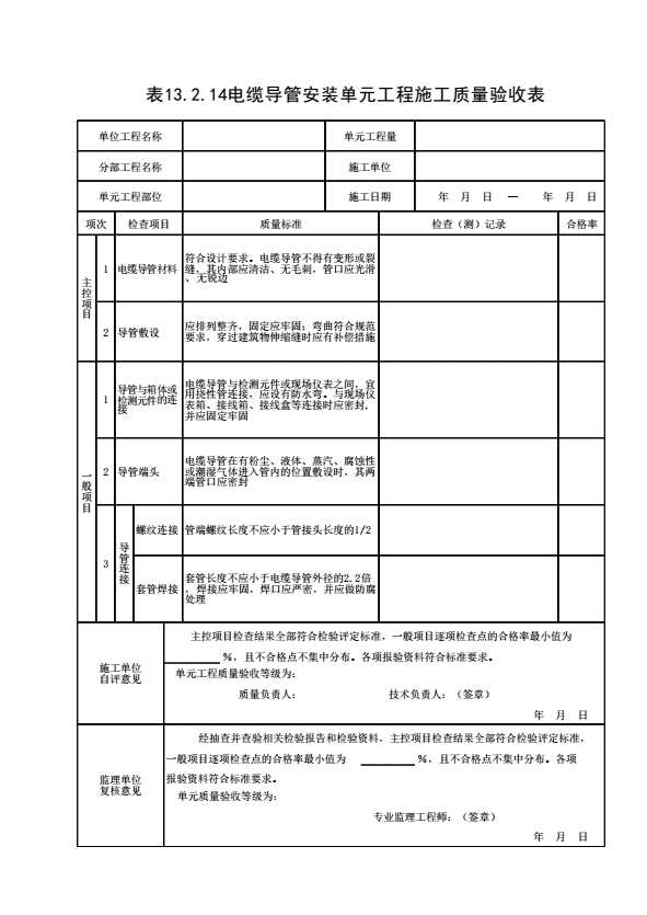 表格名称:表13.2.14 电缆导管安装单元工程施工质量验收表