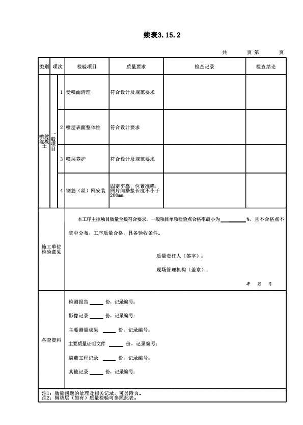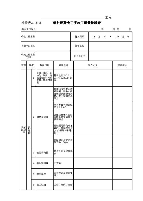 表格名称:表3.15.2 喷射混凝土工序施工质量检验表