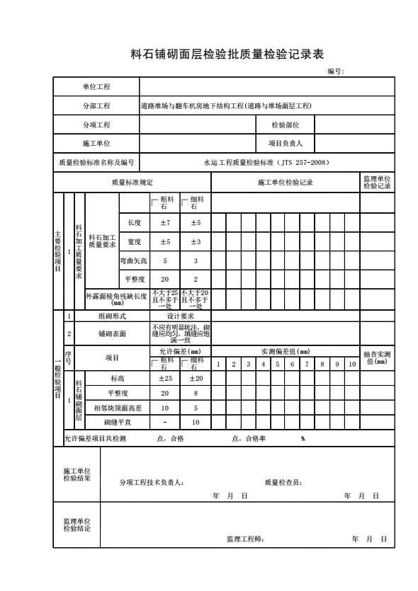 表格名称:料石铺砌面层检验批质量检验记录表