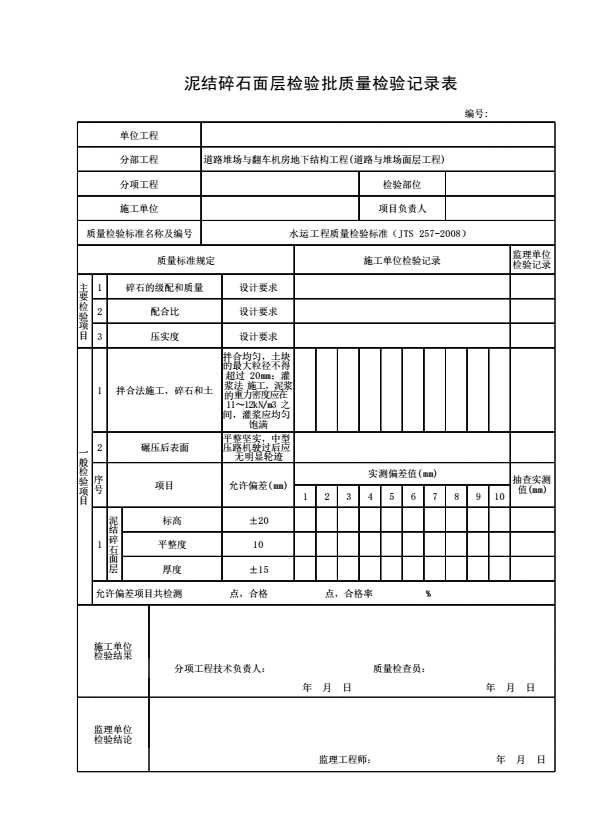 表格名称:泥结碎石面层检验批质量检验记录表