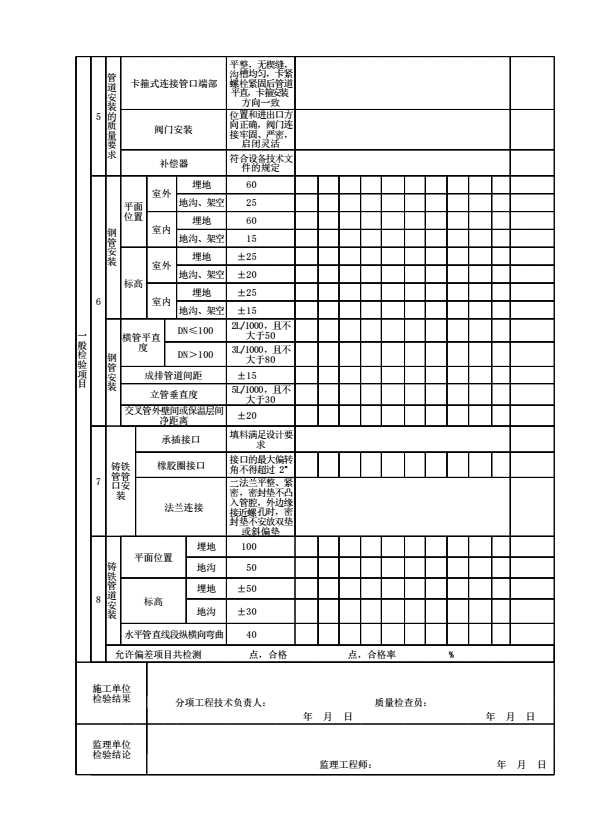 表格名称:管道安装检验批质量检验记录表
