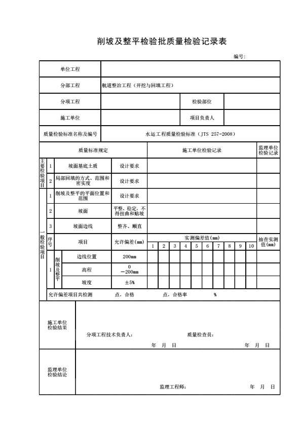 表格名称:削坡及整平检验批质量检验记录表