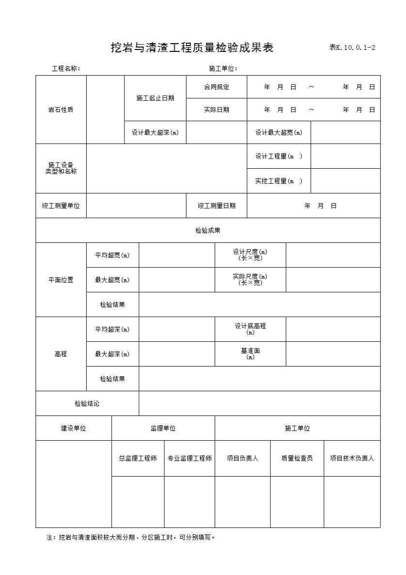 表K.10.0.1-2 挖岩与清渣工程质量检验成果表
