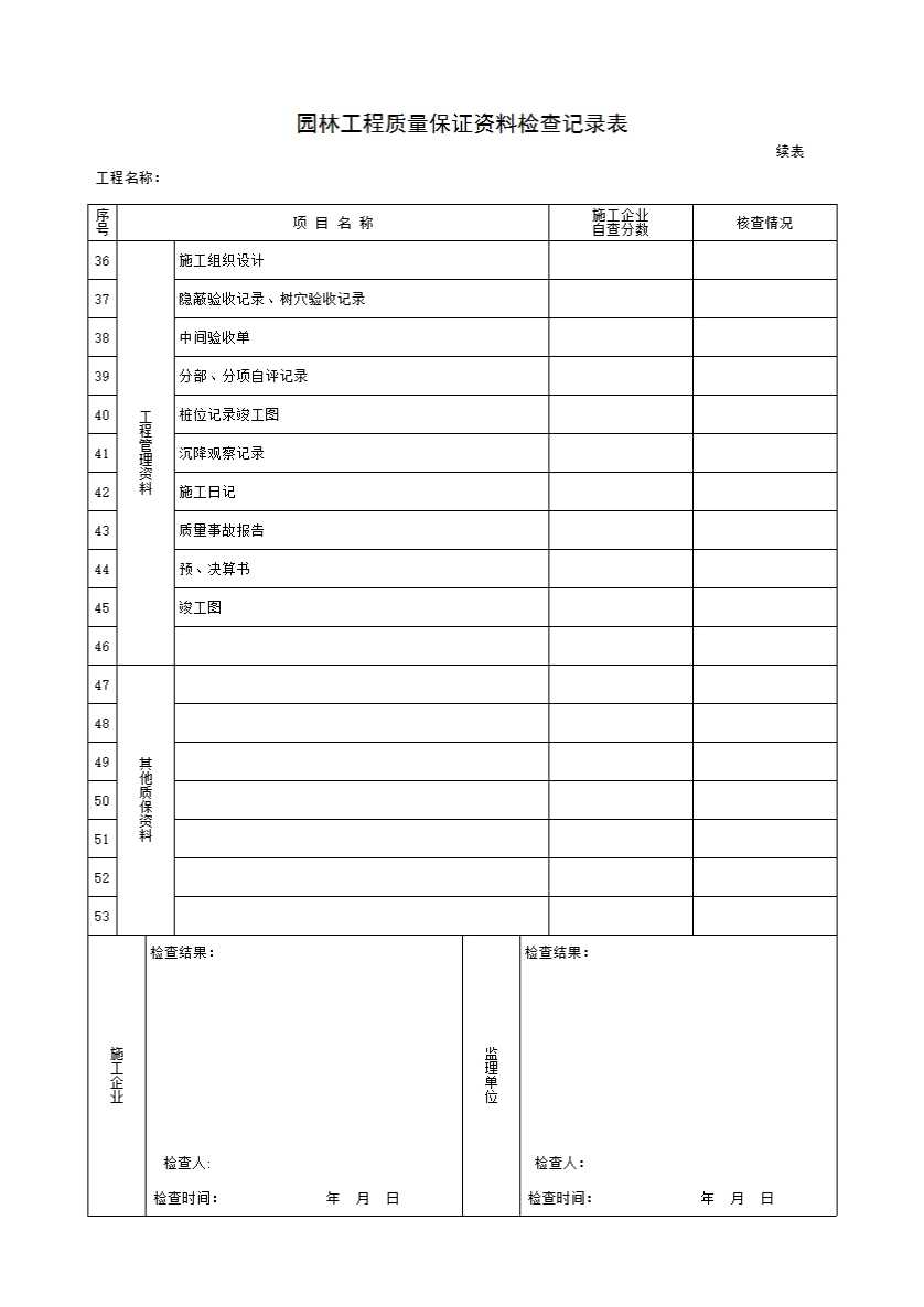 表格名称:监C-03-1园林工程质量保证资料检查记录表