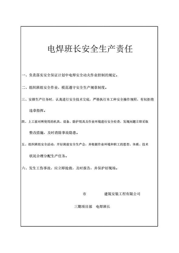 工程项目部各部门和各级人员安全生产岗位责任制安1—4