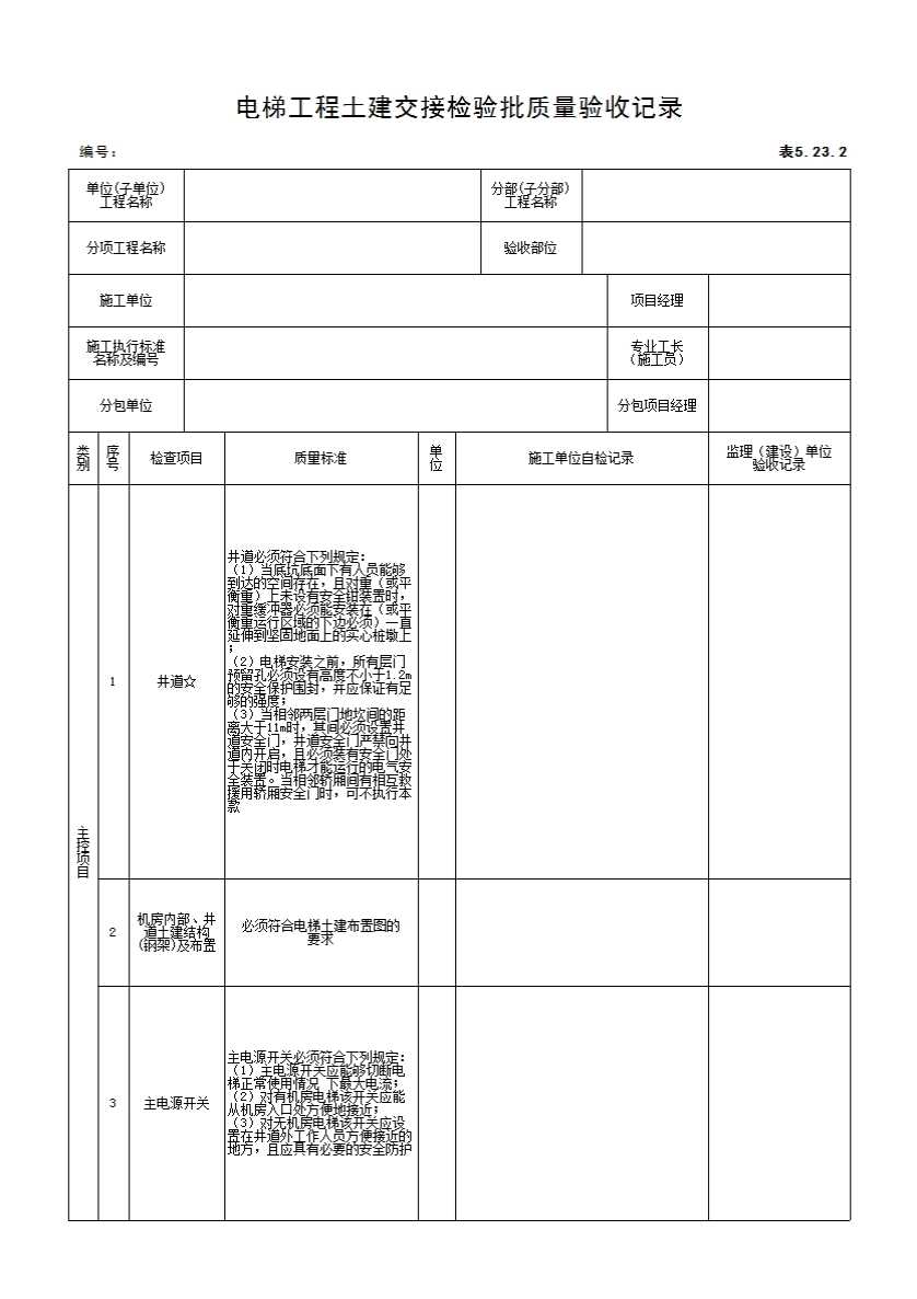 5.23.2 电梯工程土建交接检验批质量验收记录