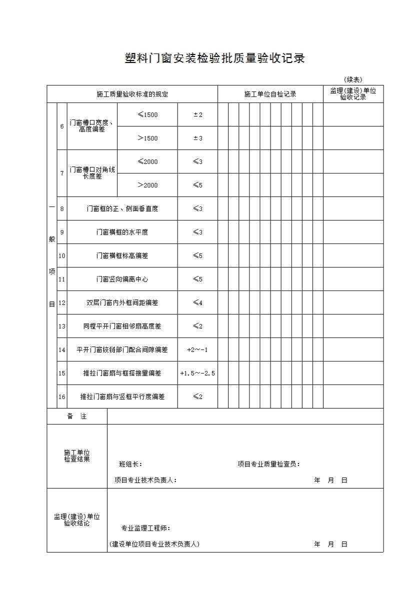 塑料门窗安装检验批质量验收记录