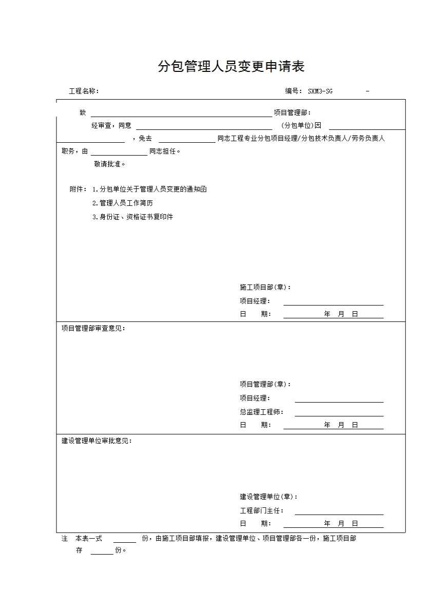 表格名称:SXM3 分包管理人员变更申请表
