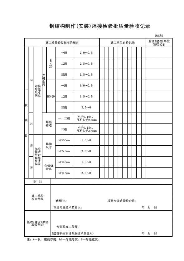 表格名称:钢结构制作(安装)焊接检验批质量验收记录