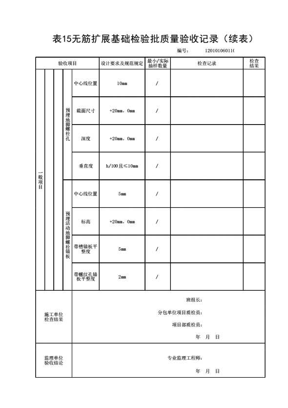 表格名称:120101060110 无筋扩展基础检验批质量验收记录