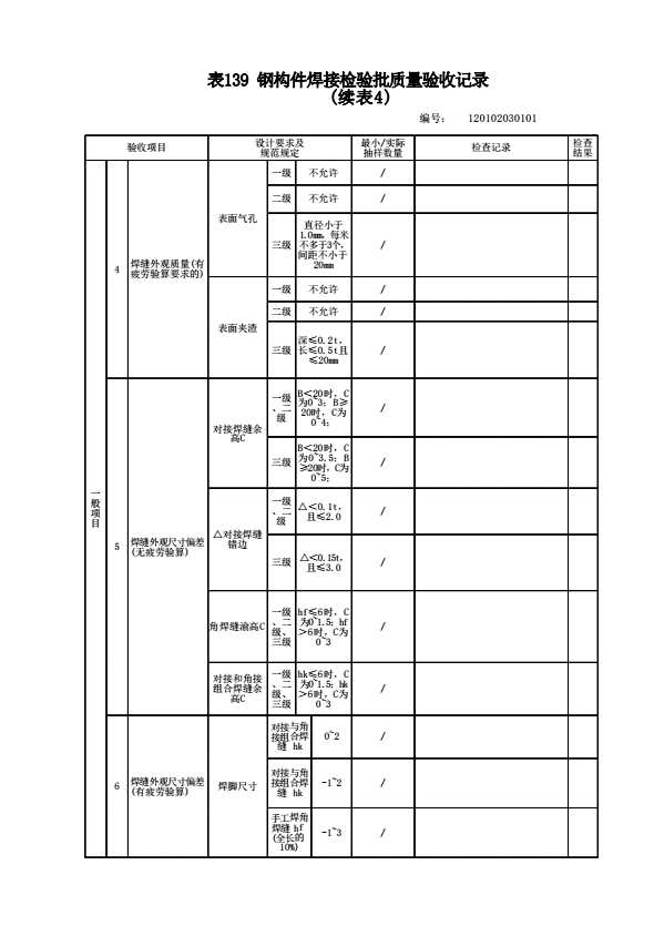 表格名称:120102030101 钢构件焊接检验批质量验收记录