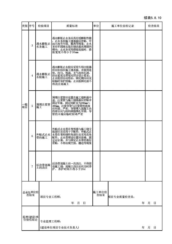 表格名称:表5.8.10 后浇带防水检验批质量验收记录