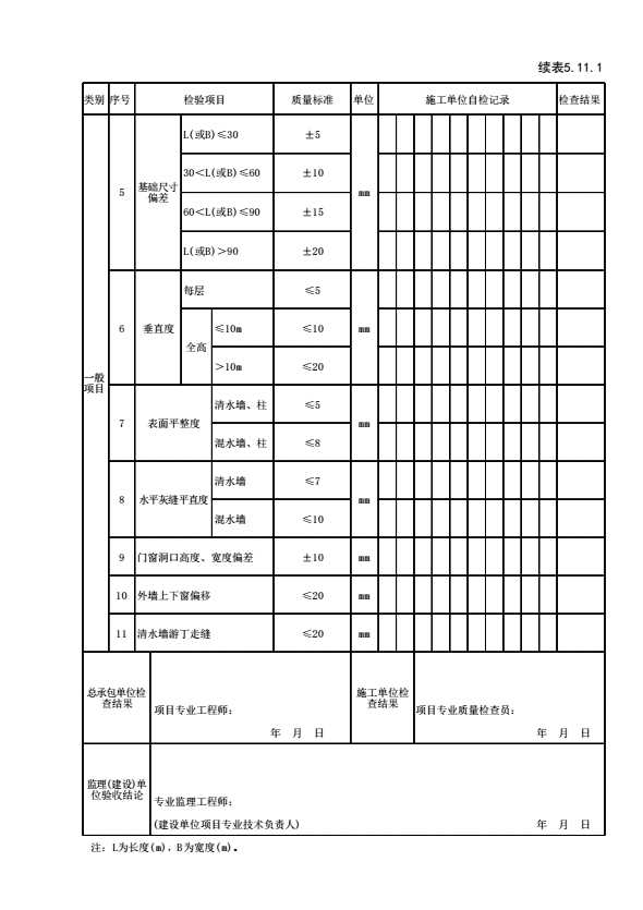 表格名称:表5.11.1 砖砌体工程检验批质量验收记录