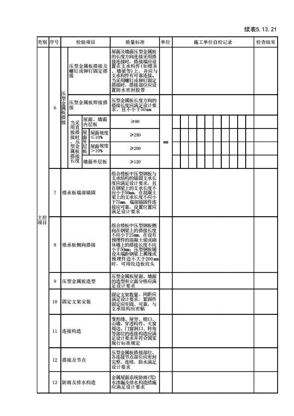 表格名称:表5.13.21 压型金属板(隔音降噪板)工程检验批质量验收记录
