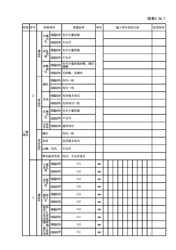 表5.26.1 水性涂料涂饰工程检验批质量验收记录