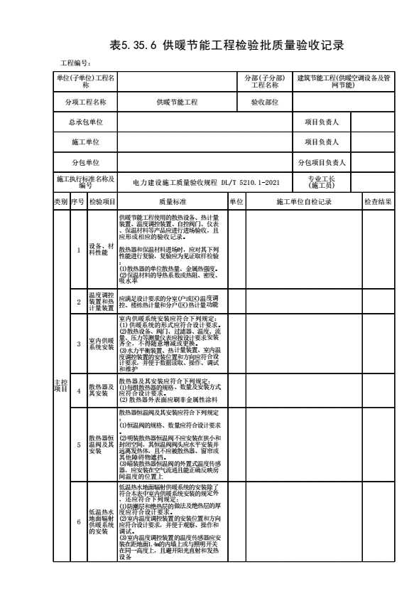 表格名称:表5.35.6 供暖节能工程检验批质量验收记录