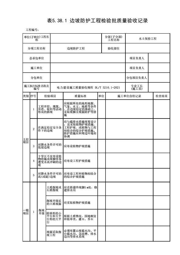 表5.38.1 边坡防护工程检验批质量验收记录