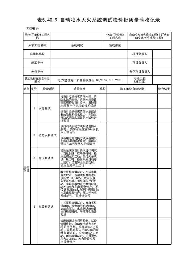 表格名称:表5.40.9自动喷水灭火系统调试检验批质量验收记录