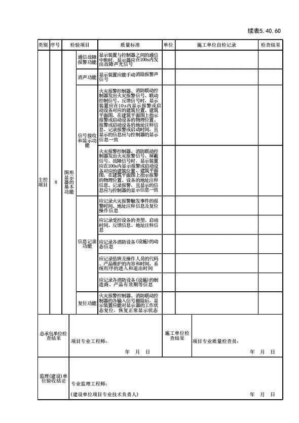 表格名称:表5.40.60 火灾自动报警系统消防控制室图形显示装置和传输设备调试、检测检验批质量验收记录