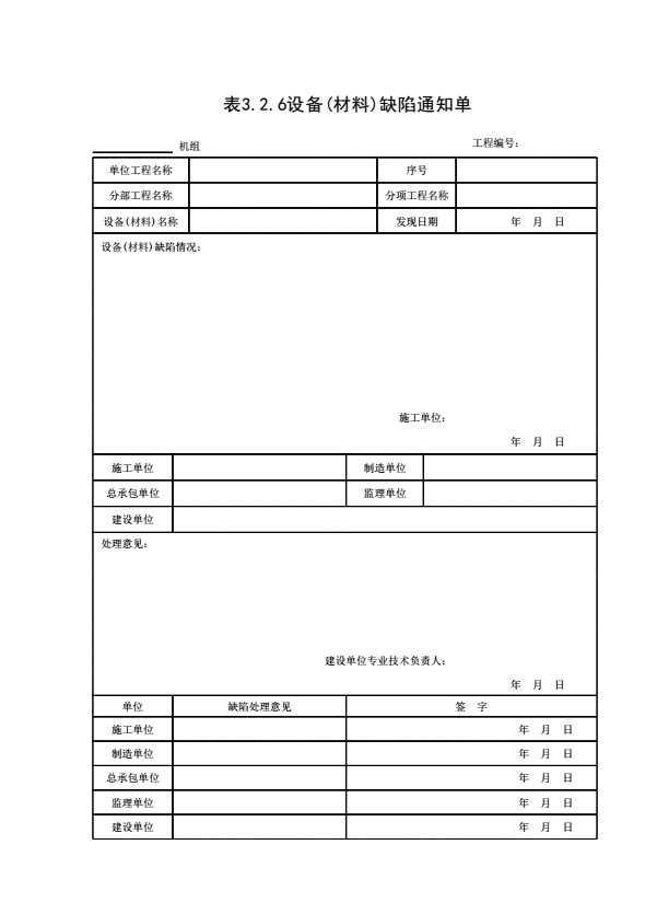表3.2.6 设备(材料)缺陷通知单