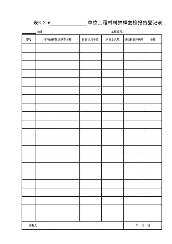表格名称:表3.2.6 ______单位工程材料抽样复检报告登记表