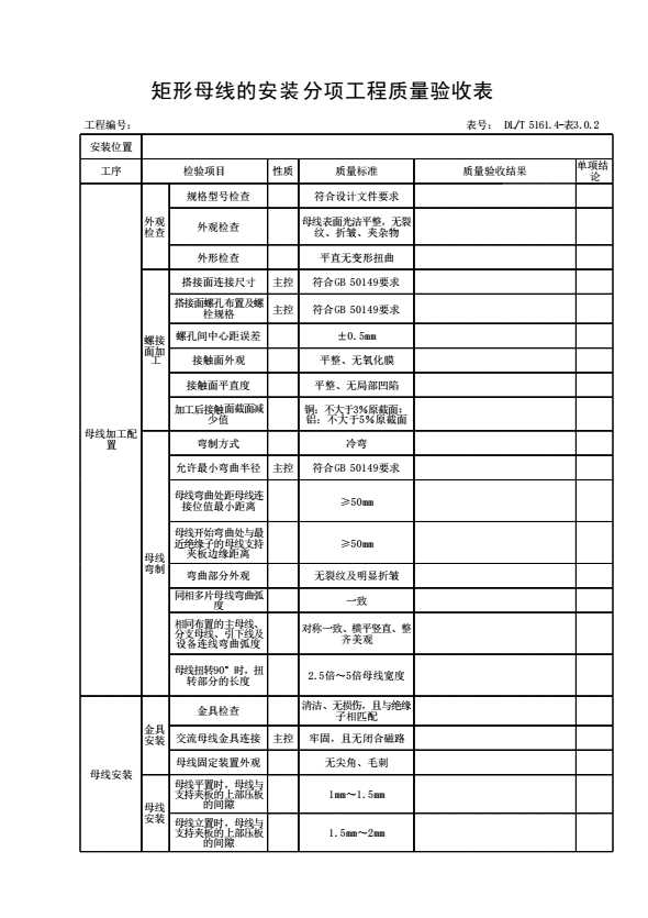 表格名称:表3.0.2 矩形母线的安装分项工程质量验收表