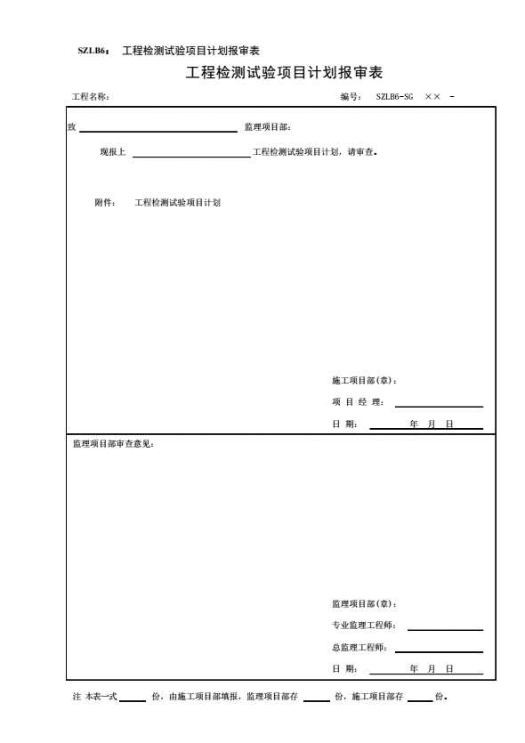 表格名称:SZLB6:工程检测试验项目计划报审表
