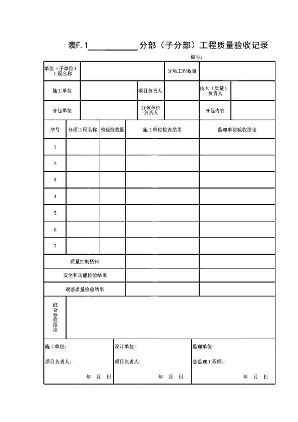 表格名称:表F.1 ______分部(子分部)工程质量验收记录