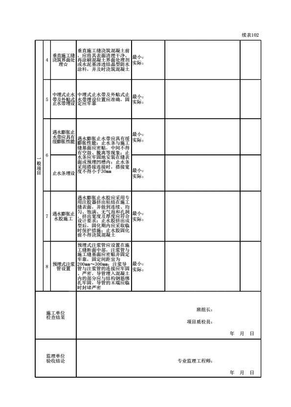 表格名称:040101070201 施工缝检验批检验批质量验收记录