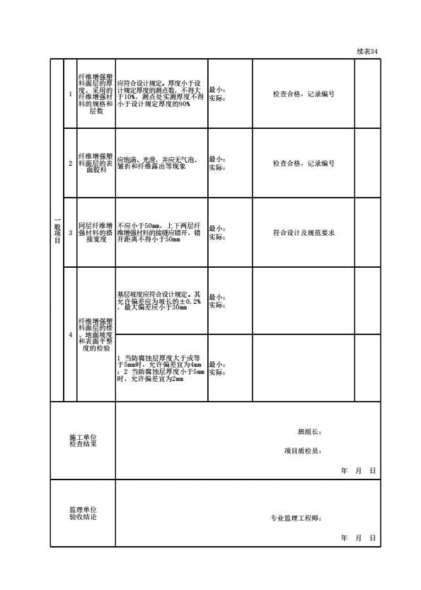 表格名称:100101061307 纤维增强塑料面层检验批质量验收记录