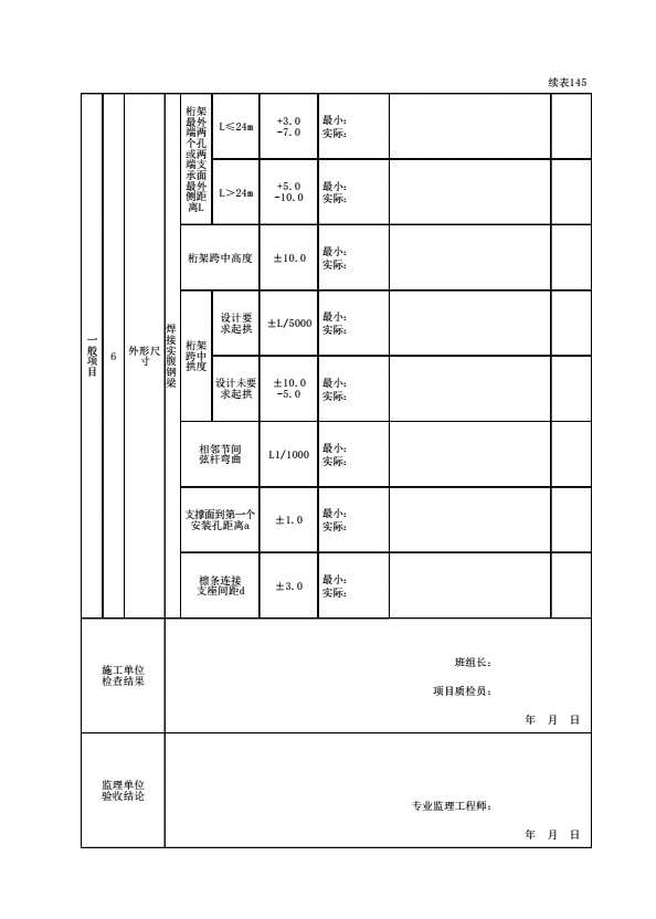 表格名称:100102030402 钢构件(钢梁、屋架、桁架)组装检验批质量验收记录