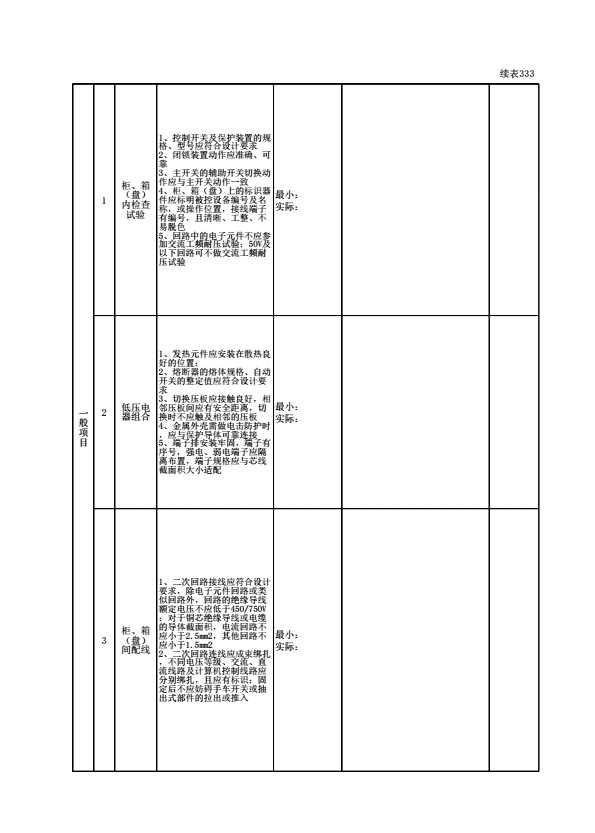 表格名称:110107030101 动力、照明配电箱(盘)安装质量标准和检验方法