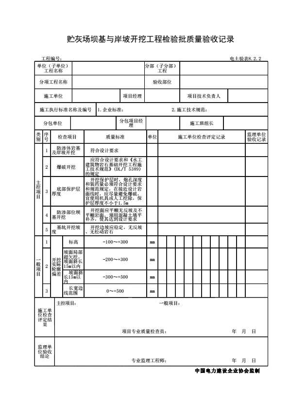 表格名称:电土验表8;2.2 贮灰场坝基与岸坡开挖工程检验批质量验收记录
