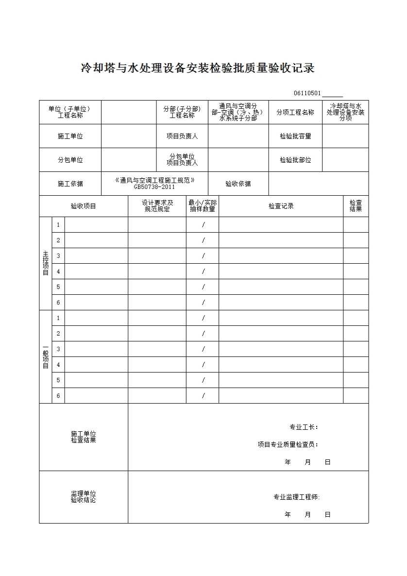 表格名称:06110501_冷却塔与水处理设备安装检验批质量验收记录