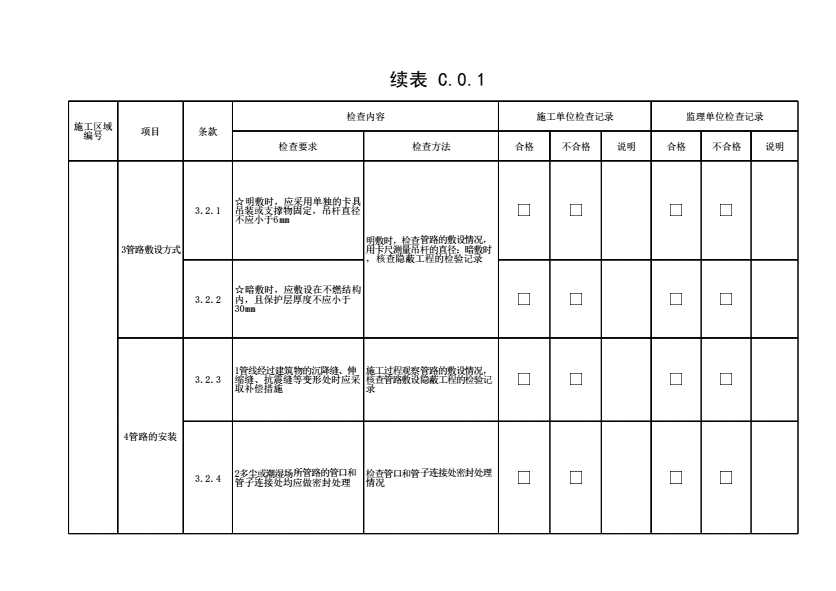 表格名称:表C.0.1 火灾自动报警系统材料、设备、配件进场检查和安装过程质量检查记录(续表3)