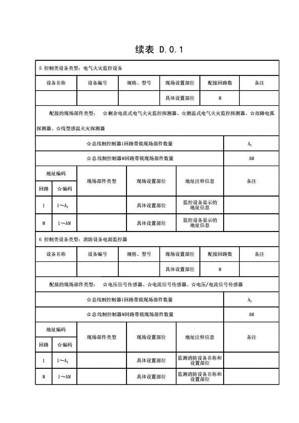 附录D 系统部件现场设置情况、控制类设备联动编程、消防联动控制器手动控制单元编码设置记录