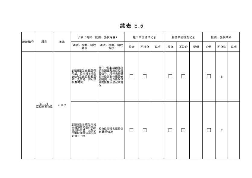 表格名称:表E.5 电气火灾监控系统调试、检测、验收记录(续表6)