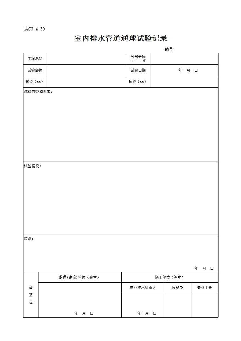 表格名称:105.室内排水管道通球试验记录(C3-4-30)