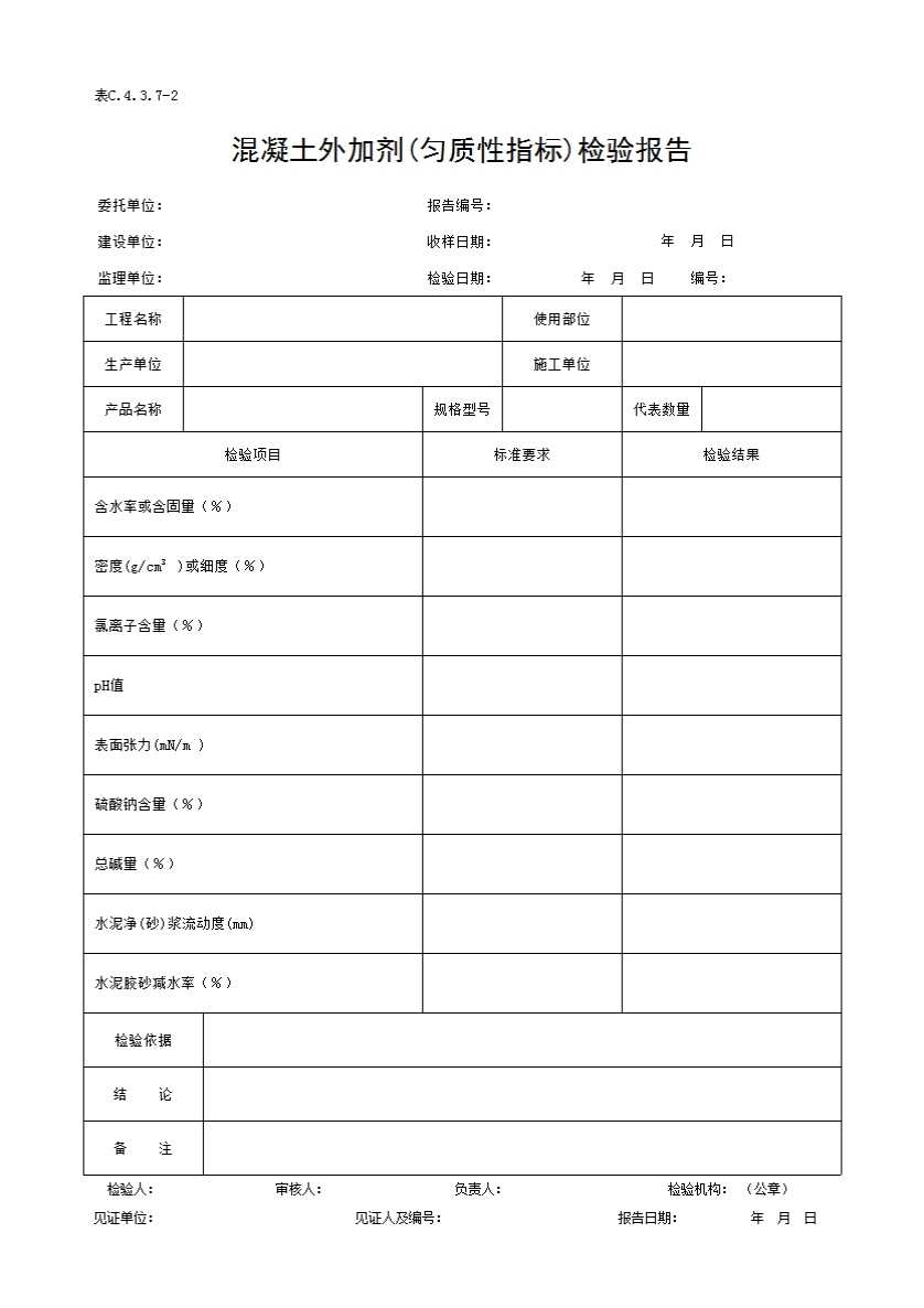 表C.4.3.7-2 混凝土外加剂(匀质性指标)检验报告
