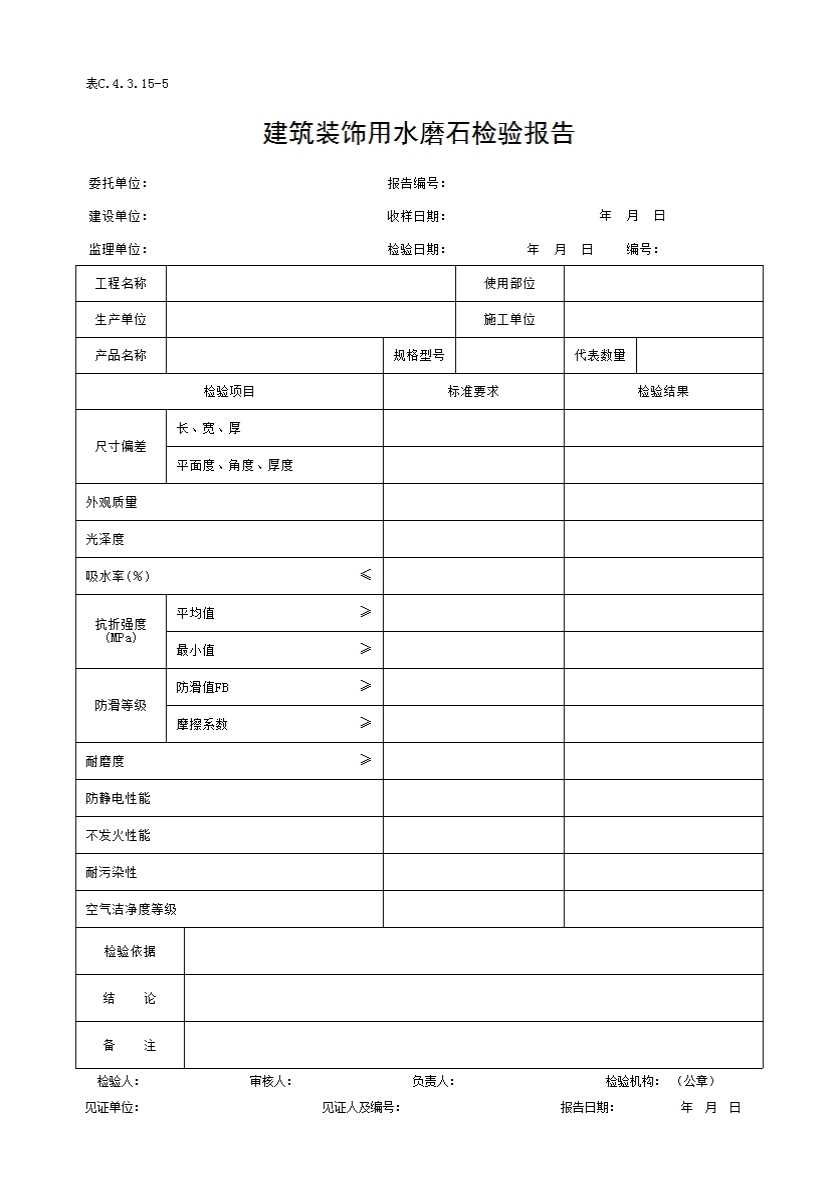 表C.4.3.15-5 建筑装饰用水磨石检验报告