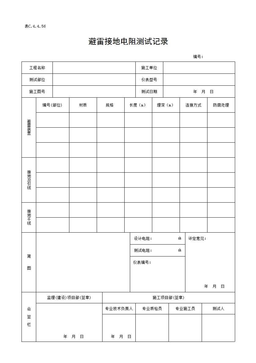 表格名称:表C.4.4.56 避雷接地电阻测试记录