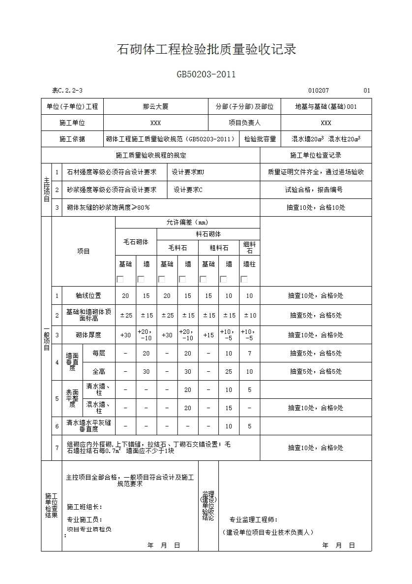 本表适用于毛石、毛料石、粗料石、细料石等砌体工程的检验批质量验收。