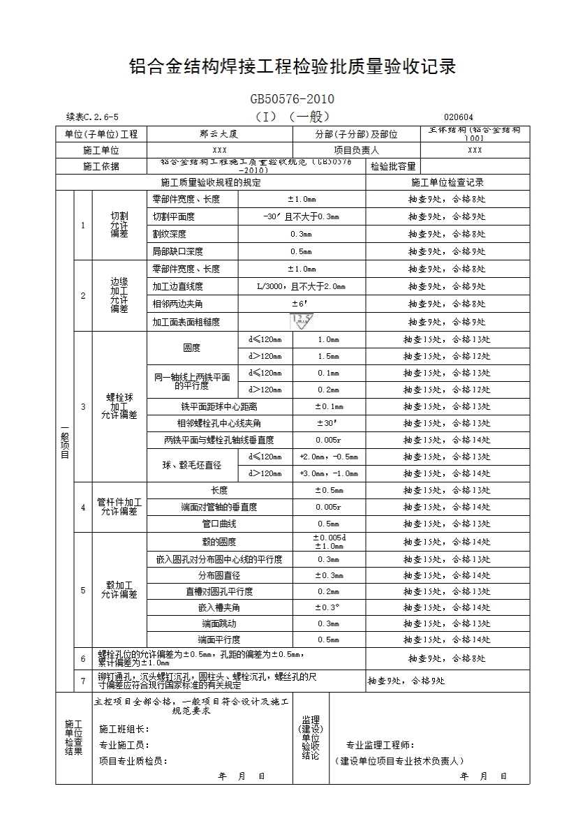 本表适用于铝合金结构制作及安装中铝合金零件及部件加工的质量验收。