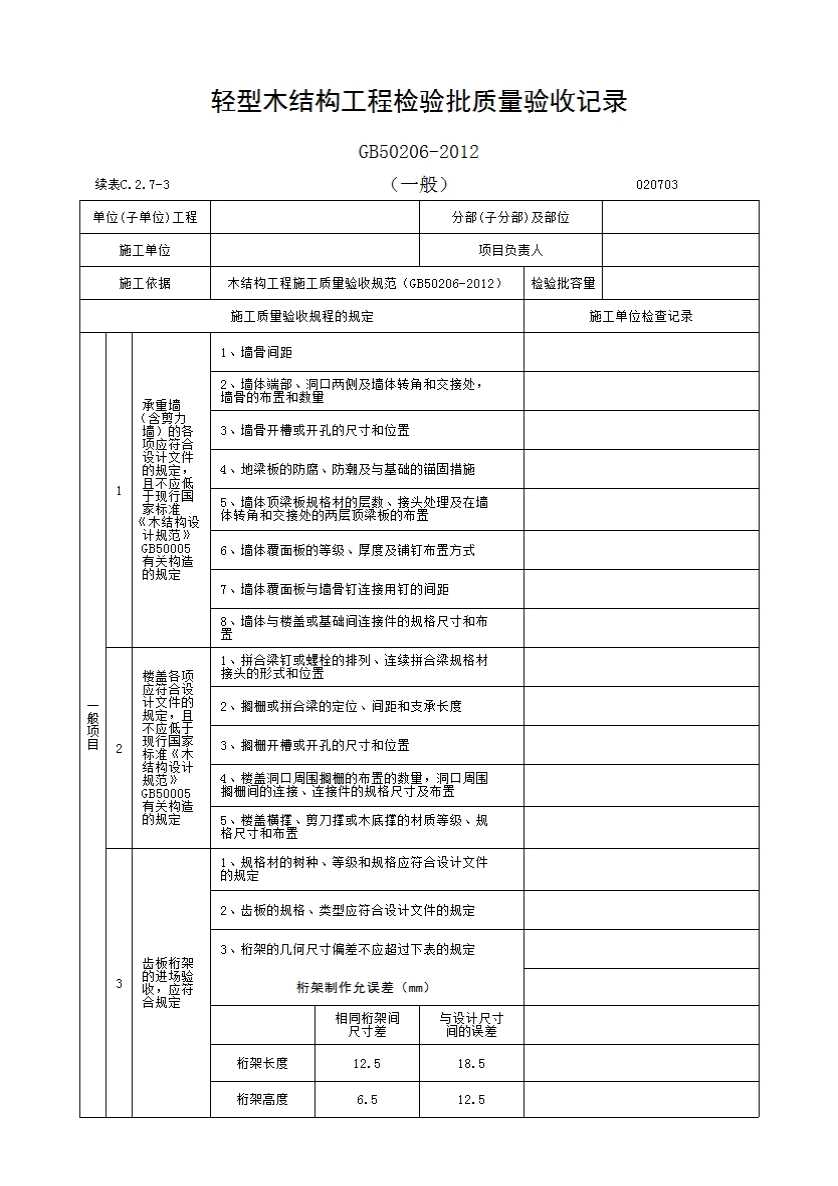 6.3.5 轻型木结构各种构件的制作与安装偏差,不应大于本规范表E.0.4的规定。
